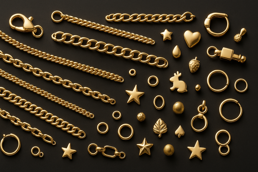 ✨ Sonuç olarak: Altın yarı mamuller; zincirlerden kilitlere, pres parçalardan figürlere ve küpe aparatlarına kadar takının tamamlanmasında görünmeyen kahramanlardır. Onlar olmadan ne estetik ne de işlevsel bir takı üretmek mümkün olurdu.